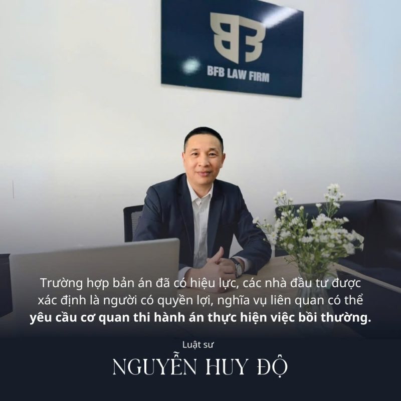 Luật sư Nguyễn Huy Độ: Trường hợp bản án đã có hiệu lực pháp luật ghi rõ các nhà đầu tư khác “có thể khởi kiện”, được hiểu là khởi kiện bằng một vụ án dân sự quy định của bộ luật tố tụng dân sự.
